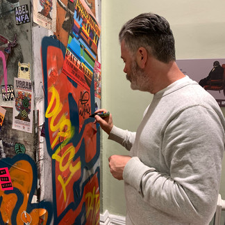 “He was influenced by the street art scene in San Francisco and once he returned to the UK, he noticed street art stencilling and did his own thing that eventually led to artist collaborations and his own studio.
